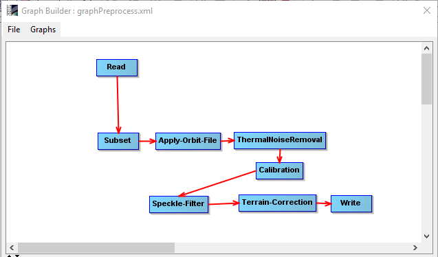 Ground Range detected product downloaded from the website, when opened in GIS it looks stretched in one direction and the geometry is not correct. The image also consists of speckle noise. Therefore, all the Sentinel-1 products were applied preprocessing in SNAP software as follows (It is easy to batch process remote sensing data in SNAP using graph builder):