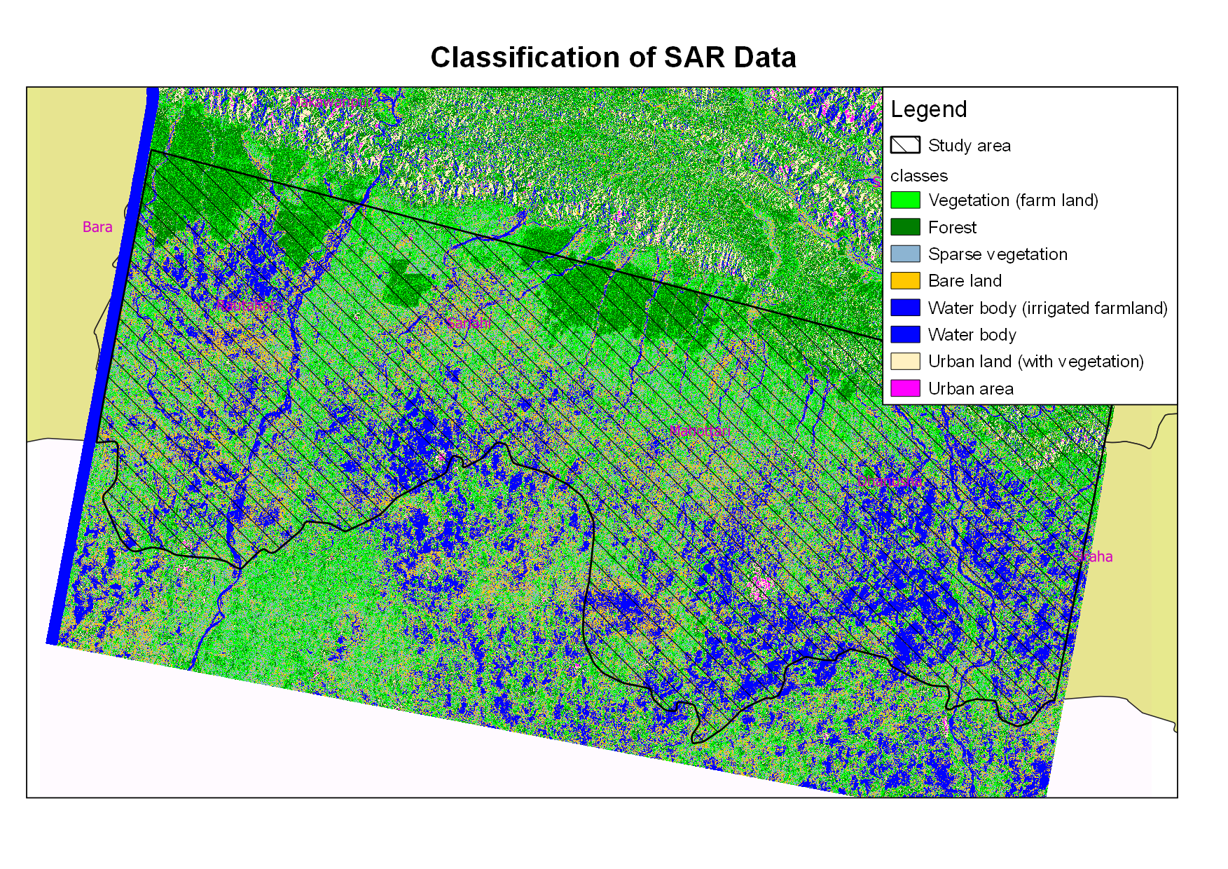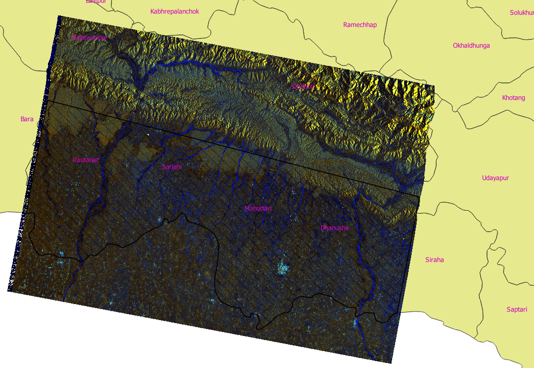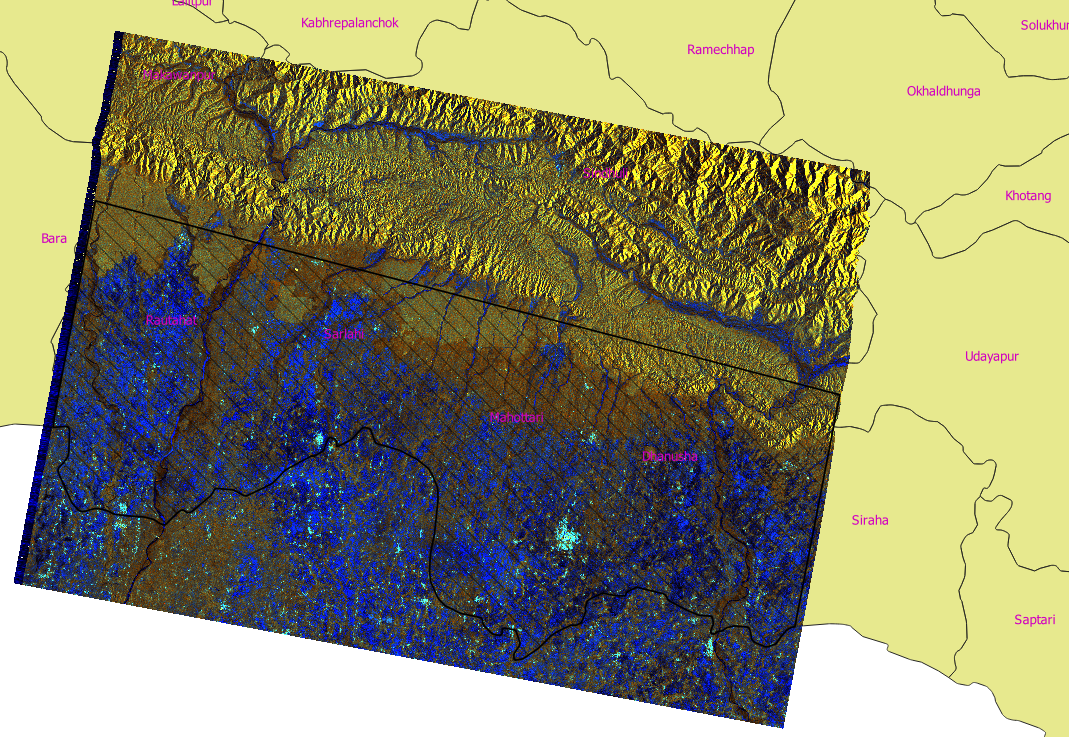 Before starting of the study I didn't have any specific area in my mind. As the reports suggested that almost whole of the Terai plain of Nepal was flooded during the season, I just caught hold of an area which was captured in one single image of Sentinel-1. The area is shown in
